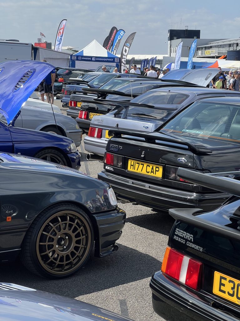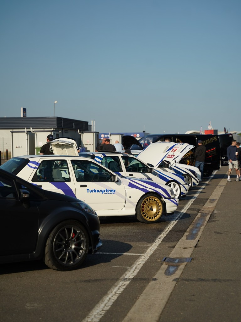 One of the most heartfelt parts of the day came just before lunch. 50 Fords joined a slow parade lap around Silverstone in memory of Dean ‘Deano’ Lewis – a true Ford scene legend.